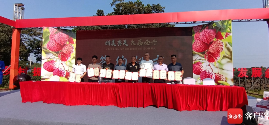 當(dāng)天上午,現(xiàn)場(chǎng)還舉行火山荔枝銷售簽約儀式,北京胖子果業(yè)公司、海南陵水豐潤(rùn)農(nóng)業(yè)發(fā)展有限公司、南京吉畝果業(yè)有限公司、海南滴滴沃家生態(tài)農(nóng)業(yè)科技發(fā)展有限公司等企業(yè)和當(dāng)?shù)毓r(nóng)進(jìn)行簽約,達(dá)成意向訂單量近1200萬(wàn)斤。