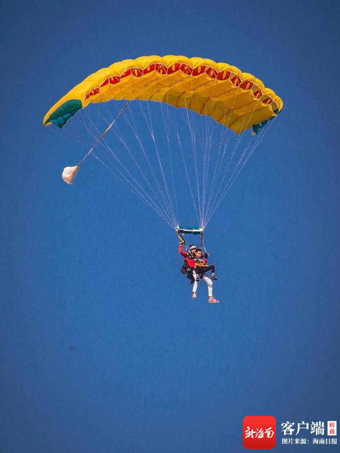游客在儋州海花島體驗(yàn)跳傘。特約記者 吳文生 攝