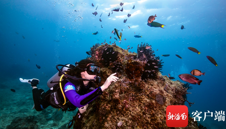 ?游客在蜈支洲島旅游區(qū)潛水。蜈支洲島旅游區(qū)供圖