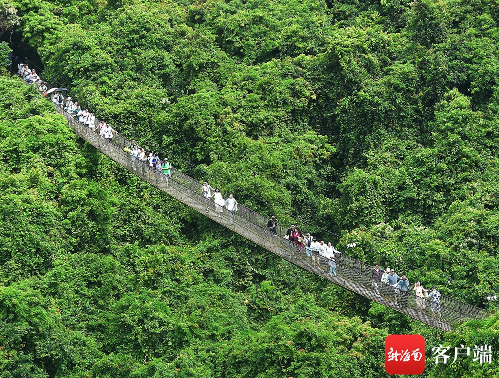 資料圖:6月22日,游人在三亞亞龍灣熱帶天堂森林旅游區(qū)登高望遠(yuǎn),感受夏日熱帶雨林涼爽宜人的旅游環(huán)境。通訊員 黃慶優(yōu) 攝