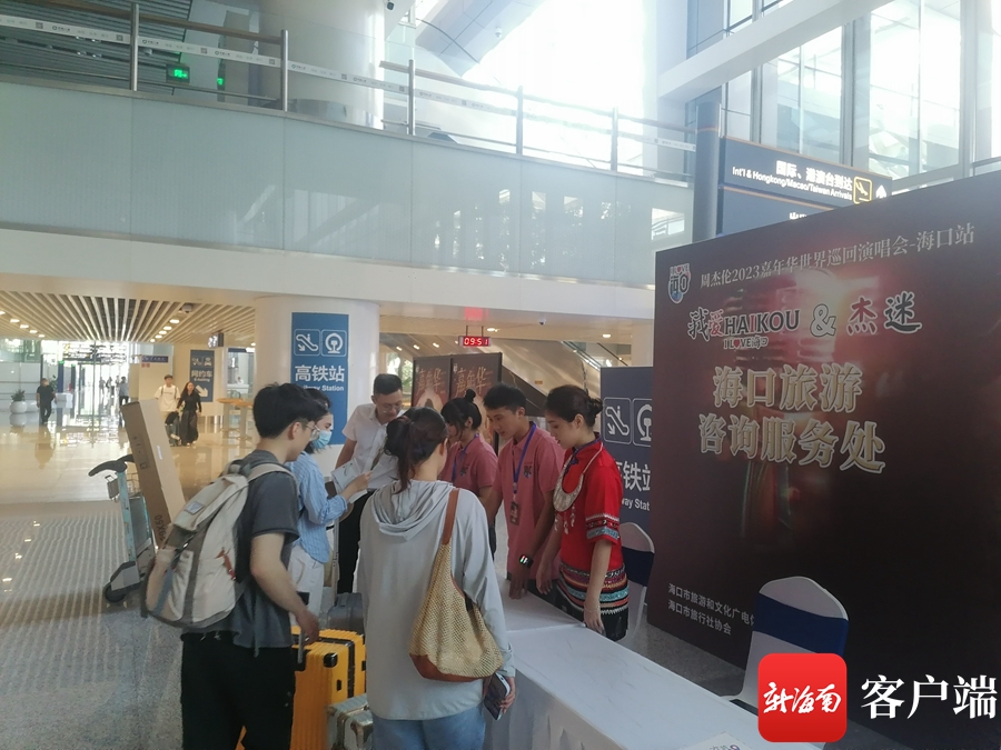 “杰迷”們在旅游咨詢服務(wù)臺前咨詢。海口市旅文局供圖