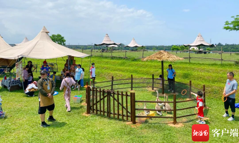 ??谑薪己谏酱逋狻⒛隙山希粔K延伸到江心的芳草沙洲,就是海口最先火起來的露營基地之一——北姆堆公園。這里有滿目嫩綠的草地,一頂頂天幕帳篷分布其間,供游客直接使用。這里也提供設備租賃,游客可以自行搭建。人們支起小桌子,鋪上野餐墊,彈琴、唱歌、拍照、享受美食,或是組隊玩飛盤、放風箏,好不自在;“兔子島”“柯爾鴨萌寵”等項目的加入,更讓北姆堆成為近郊親子游的人氣之選……