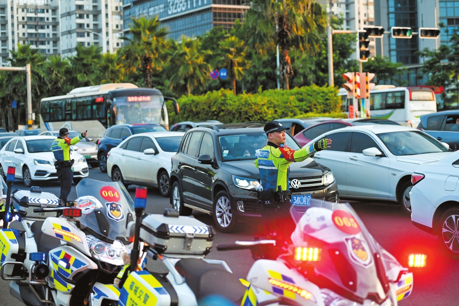 演唱會(huì)場(chǎng)館外圍,交警忙著疏導(dǎo)交通。海口日?qǐng)?bào)記者 石中華 攝