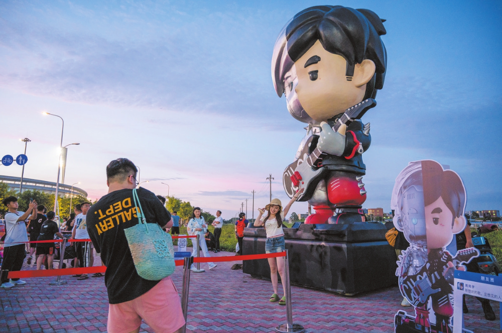 7月1日,歌迷前往五源河體育場(chǎng)觀看周杰倫2023嘉年華世界巡回演唱會(huì),進(jìn)場(chǎng)前在場(chǎng)館外拍照。海口日?qǐng)?bào)記者 楊忠凱 攝