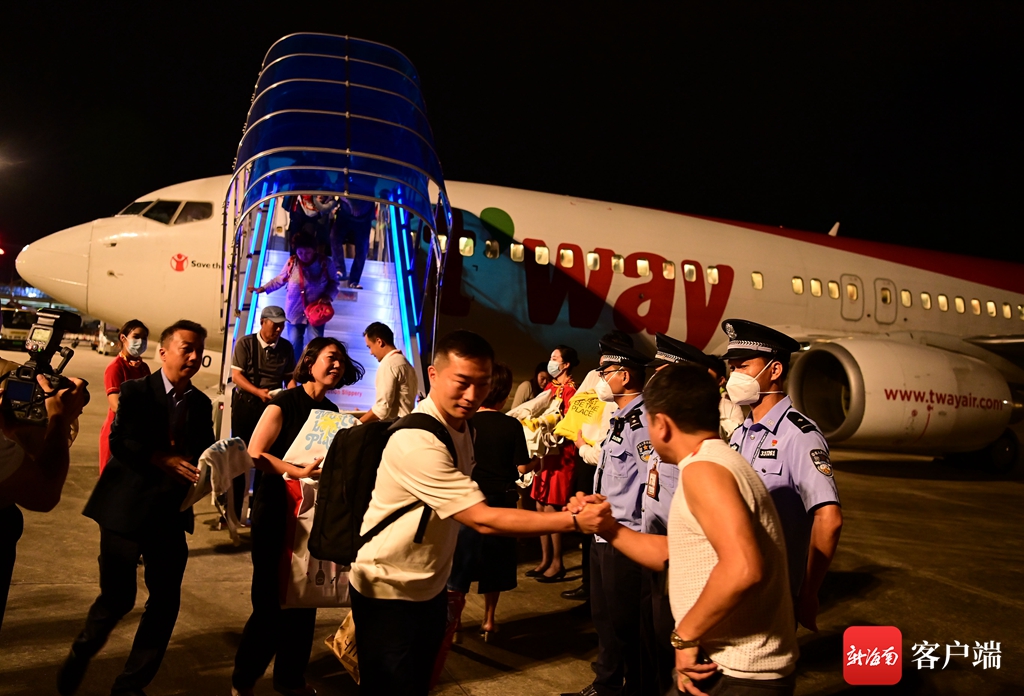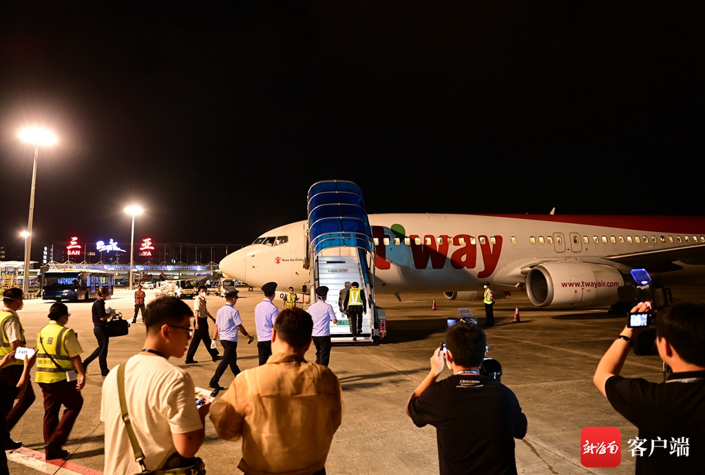 7月6日,由德威航空執(zhí)飛的TW621航班搭載著125名旅客從韓國首爾抵達(dá)三亞鳳凰國際機(jī)場。記者沙曉峰 攝